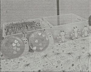 centers. Above, some of the crafts were snails and butterflies, while (below),