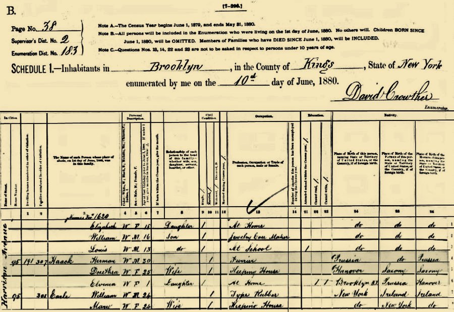 1880 Census, Brooklyn, NY, Harrison Ave., House # 95, Dwelling Number 191