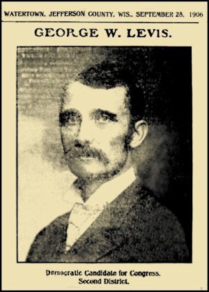 Watertown. Jefferson county. Wis.. September 28. 1906 George W. Levis, the Democratic candidate for Congress in the Second District of Wisconsin, which comprises the counties of Dane, Jefferson, Columbia, Green Lake, Marquette and Adams, is a resident of the city of Madison, Wisconsin. Mr. Levis is 45 years of age and was born at Black River Falls in Jackson County , Wis., October 15th, 1861 He has been a resident of Wisconsin, all his life. His education was obtained in the public schools of his native county and at the State University of Wisconsin, having graduated from the Law Department of the University with the class of 1893.
