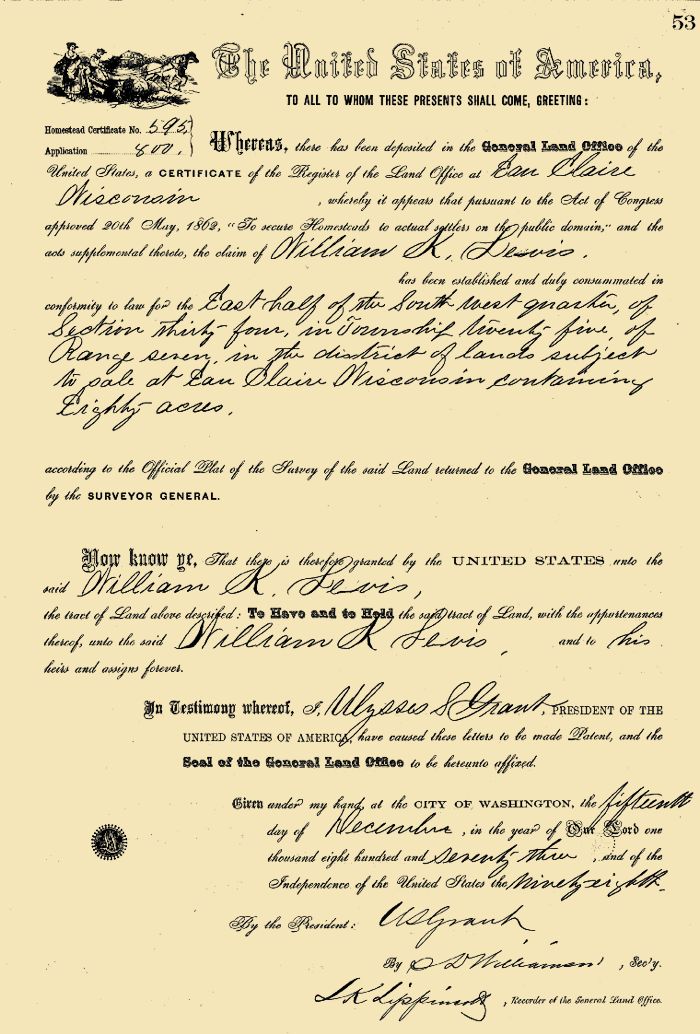 William K. Levis b. October 16, 1814, Bristol, PA. Came to Alton, IL in 1835 or 1837. The rest of the family soon followed. Appears in Alton in the 1840 Census. Probably moved to Black River Falls sometime in the early 1840's. His obit claims he came in the 1830's . In 1847 he married Mary Blanchard in one of the first area weddings. He bounced around the Jackson County area for a number of years, engaging in various industries as detailed in his obituary. Eventually he settled in Osseo, north of Black River Falls and became a farmer. Although I don't have an abundance of information on his descendants, one person of note in this branch is John Miller, son of Mary Blanchard by her first husband. He fought in the Civil War and voted for Abraham Lincoln in 1864 despite being under age, and lived long enough to see D-Day. Rootsweb