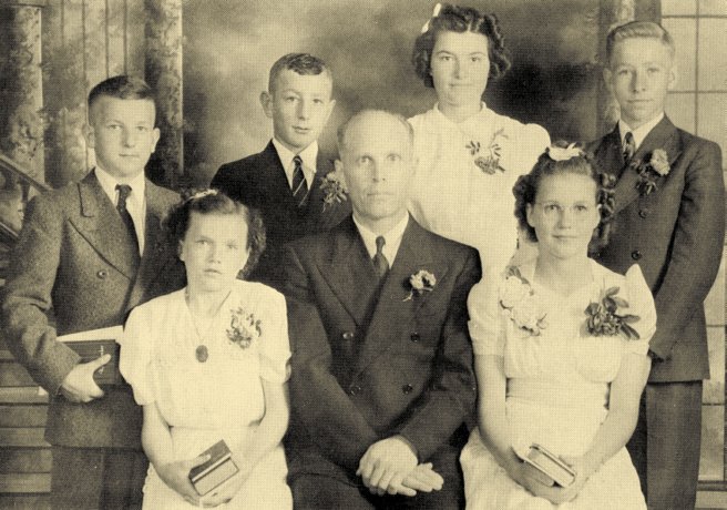Seated: Arlyle Boeldt, Rev. Wendling, Sylvia Cizik.