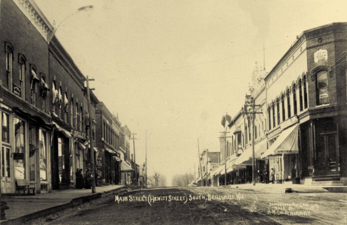 A photo post card taken when electric poles bordered the streets in downtown Neillsville.