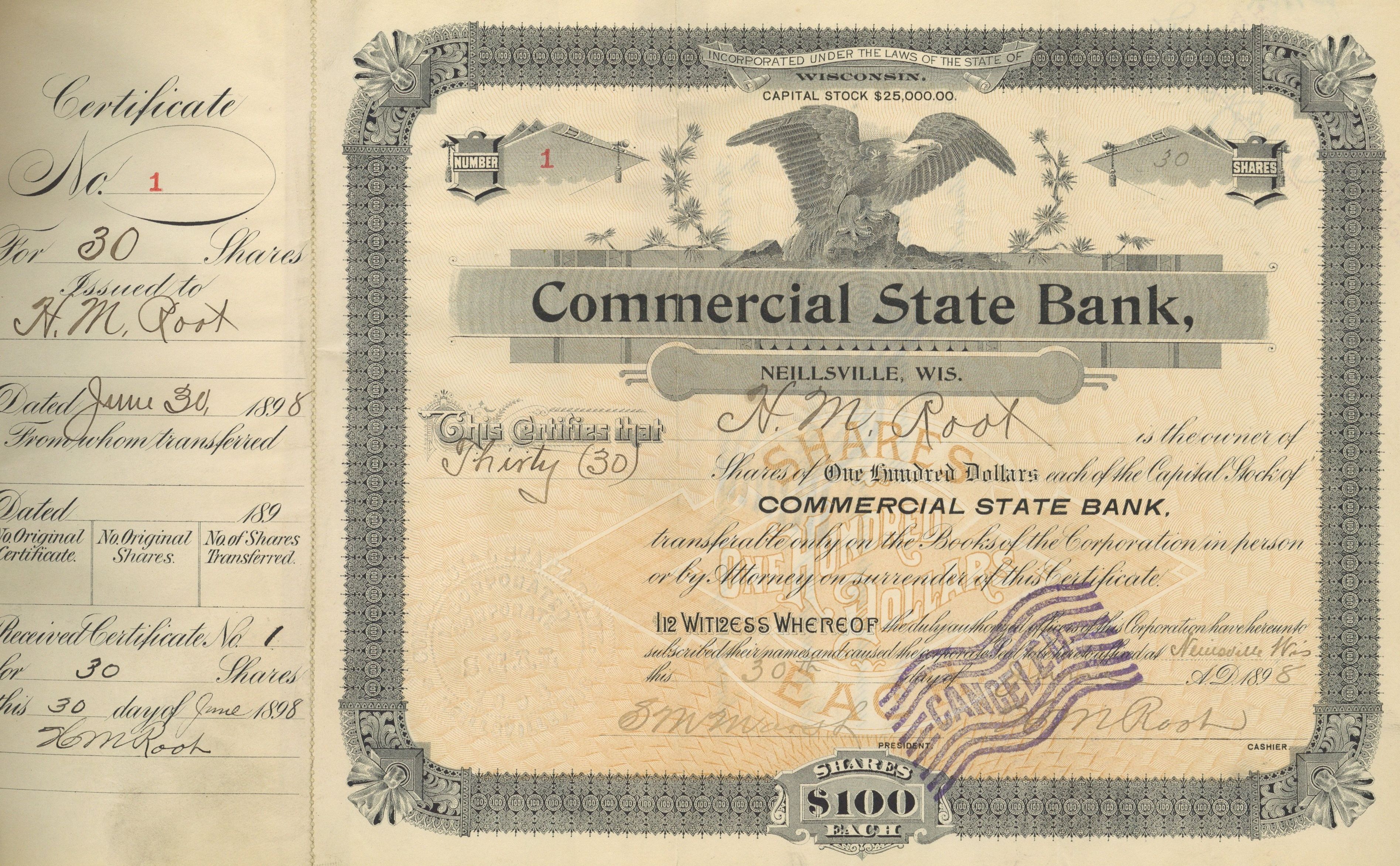 Original owners of stock for the Commercial State Bank was issued June 30, 1898