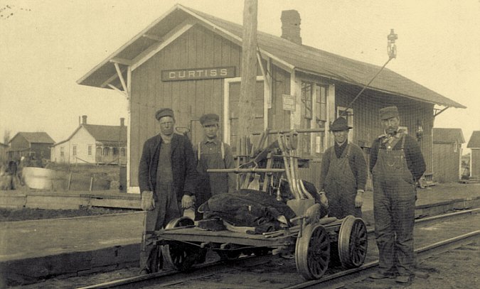 The rare photo above of a 1915 work crew at the Curtiss, Wisconsin Train Depot in 1915, was contributed from the "Lipprandt Family Archives." This is the only existing photo of this particular scene.  If you can identify any of the individuals, please contact Robert Lipprandt.