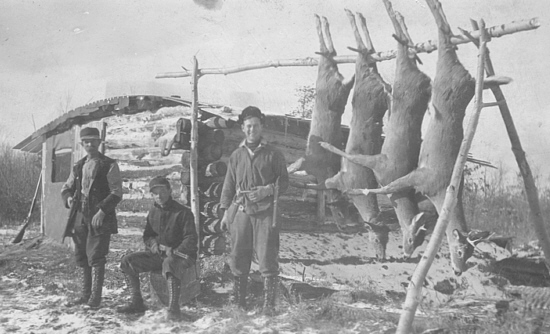 Pictured above are three victorious deer hunters with their "kill" in the Town of Mead, near the Black River. On the left is August Stabnow, Harold Stabnow in the center and Floyd Volk to his right. This picture is part of the Greenwood Public Library Collection.