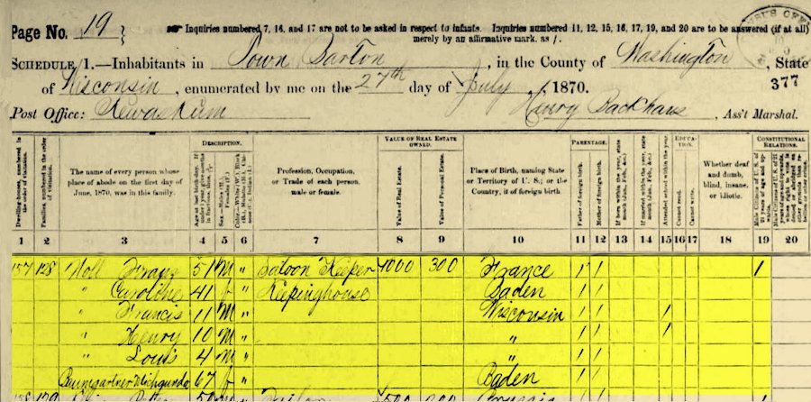 1860 Federal Census, Barton, Washington Co., Wisconsin