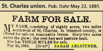 ....Sources: North Iowa times. (McGregor, Iowa), 1868-10-07; The St. Cloud journal, October 15, 1868; Family Records; Rochester, MN Post, 27 Jun 1868, Minneapolis daily tribune. Pub. Date Jun 21, 1868, The record and union. Pub. Date August 20, 1875, Rochester, MN