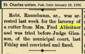 The examination of witnesses commenced on Thursday morning. The first one sworn was Mrs. (Salome "Sarah" Noll) Ableitner, widow of the murdered man. She is a plain old lady of about fifty. Being unable to speak English, Mr. B. Gold was sworn as an interpreter.