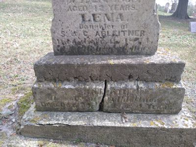 *The inscription says "1868", but that May have been the time the stone was placed. The 1867 death date has been confirmed. His daughter, Lena, was buried under the same stone. |