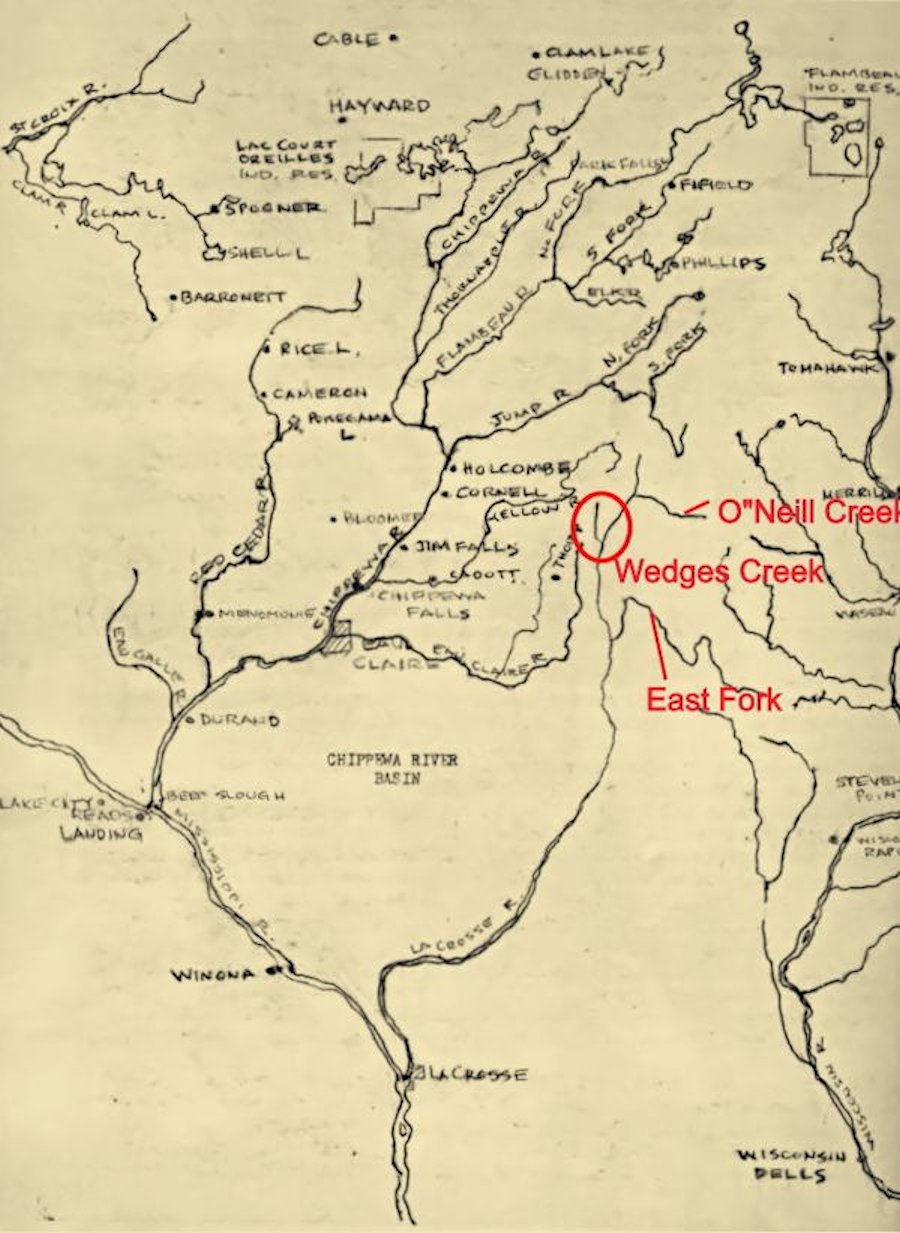 Location of Allen's "Wedge's Creek" Camp (org. map from Logging)