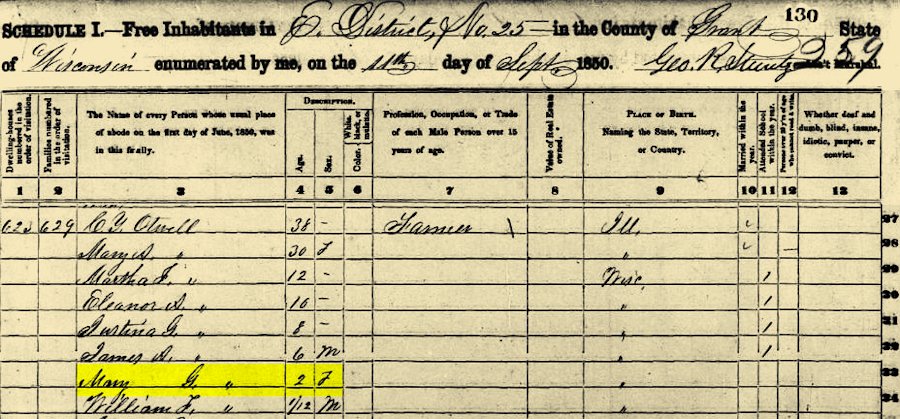 1850 Grant County, WI Census