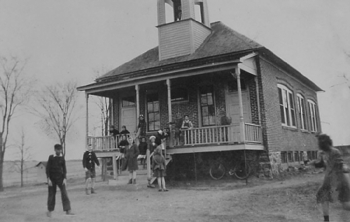 Below is a digital image of South Bright School from Ilene (Awe) Pribbernow's collection of photographs. This was taken in 1941. By this time a roof had been added to the porch.