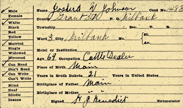 At the age of twenty-six, Joshua W. Johnson (b. 1836,