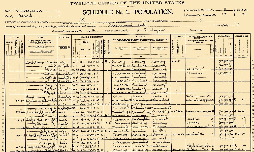 Name | Relation | Marital | Sex | Race | Age | Nativity | Occupation | F-Nativity | M-Nativity |