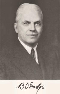 Bernard Ogilvie Dodge was born April 18, 1872, on his father's farm near Mauston, Wisconsin, and died August 9, 1960, at the age of 88, in New York City. He was a member of the National Academy of Sciences, member of Sigma Xi, Fellow of the American Association for the Advancement of Science, Fellow of the American Academy of Arts and Sciences, Foreign Member of the Linnean Society of London, Honorary Member of the British Mycological Society, Vice-President of the 7th International Botanical Congress at Stockholm, President of the Mycological Society and the Torrey Botanical Club, recipient of the Golden Jubilee Award of Merit of the Botanical Society of America, author of a textbook on Diseases of Ornamental Plants, and of over 150 papers dealing with the life histories, cytology, morphology, pathology and genetics of the fungi and with insects and other animal pests of plants.