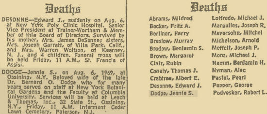 Obits [Dodge, Bernard] [Dodge, Jennie]