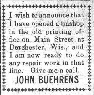 for John Buehrens’ Tinshop, Dorchester, WI.
