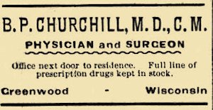 Mrs. B. P. Churchill visited her folks in Neillsville over Sunday. Greenwood Gleaner 4 May 1900