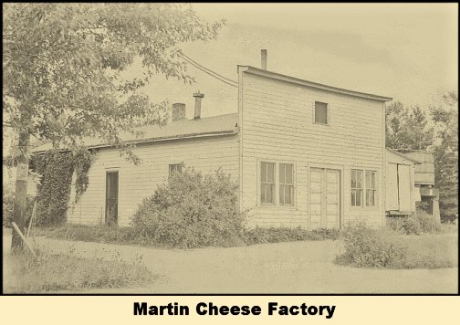 Pictured below is the Martin Cheese Factory at it looked in the late 1930's. It was located north of Riplinger, Clark Co., WI.