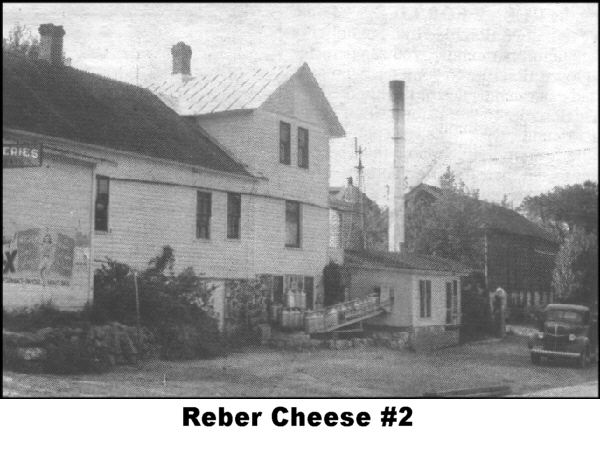 The second Reber Cheese Factory, Pleasant Ridge Creamery, was located along what is now Miller Avenue, north of Highway 10. In operation for several years, it started with local farmers as stockholders of the business. The above photo was taken in the 1940s when it was operated by Walter Reber. |