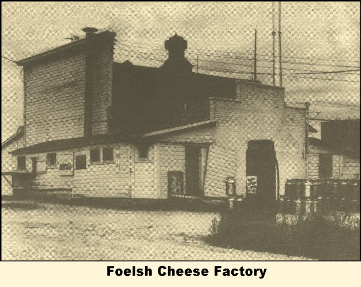The George Foelsh Cheese Factory was located in the Town of Beaver, Clark Co., Wisconsin, six and a half miles north of Loyal and 2 miles east on Riplinger Road. It was in operation until the mid 1950's.