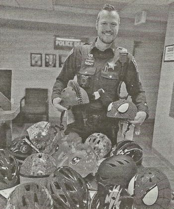 Corporal Ben Zawislan is shown with newly-purchased bike helmets for the Neillsville Police Department’s bike helmet program. The Neillsville Public Library received a donation and Chief of Police Jim Mankowski also chipped in to purchase the helmets for distribution in this area. Local police will issue the helmets to kids who are riding bikes without a helmet and need one. Kids caught riding with helmets are subject to being issued the ice cream tickets that can be cashed in for a sweet treat. Submitted photo