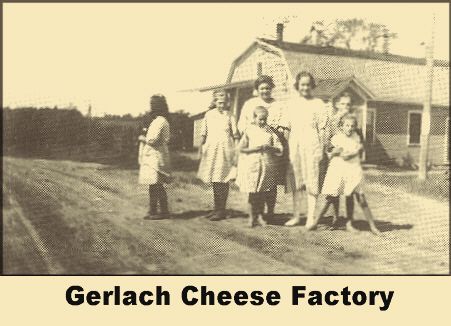 The cheese factory, once owned by William Gerlach is pictured (below) as it looked in 1920. Mr. Gerlach purchased a small parcel of land in the SW of the SE Section 30, Fremont Township and built a new creamery on it in 1910. He later sold it to John Young. The last private owner on the Courthouse records was Hugo Kobs. The plant closed in 1948 as a milk receiving station.