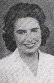 Approaching the altar on the arm of her father, the bride was attired in a formal white wedding gown. A ninon yoke distinguished the brocaded satin bodice of the frock and the long sleeves ended in points over the wrists. Her sheer ninon overskirt extended into a long court train and a rhinestone tiara held her trailing veil of illusion bordered in lace. For jewelry, she wore her mother’s gold locket and a gold bracelet, a gift from the bridegroom, and white pearl earrings. Her flowers were an arrangement of white gladioli and pink and yellow roses tied whit white, blue and pink ribbons.