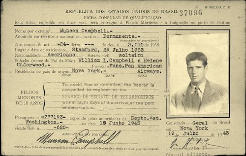 Immigration Card for William Campbell