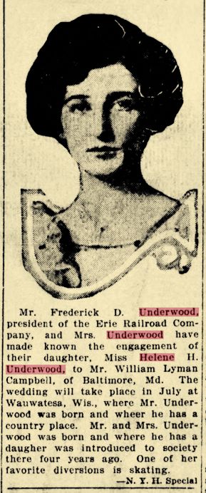 Spouse's Father's Name: Frederick D. Underwood