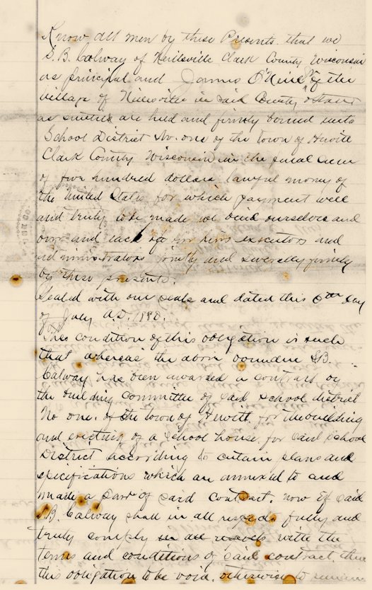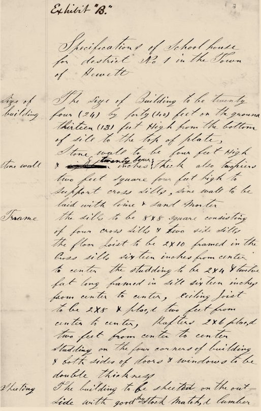 School: Hewett Township School Building Contract (18 Sep 1880)
