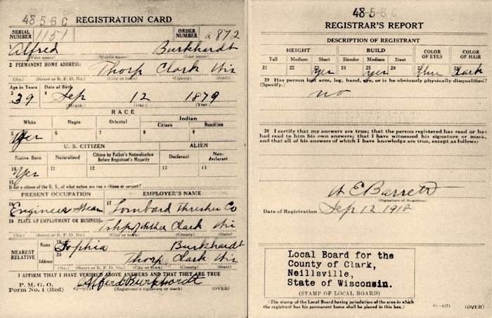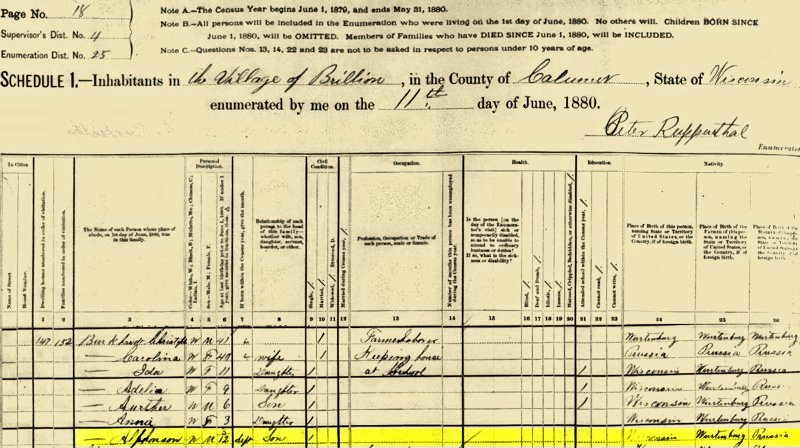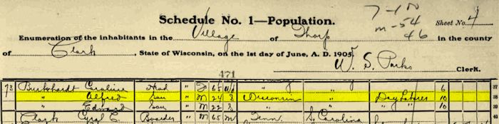 Alfred Burkhardt | 24y | Caroline Burkhardt | Thorp village, Clark, WI | Male | M | 24 | S | 1881 | Abt 1881 | WI |