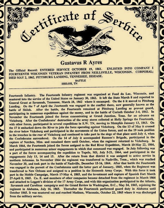Gustavus R. Ayers's Certificate of Civil War Service.