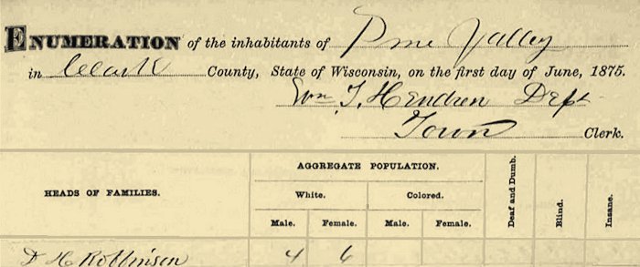 1880 Federal Census, Pine Valley, Clark, Wisconsin, United