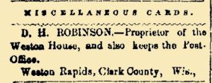 Crosse to Weston’s Rapids, two miles north of Neillsville,