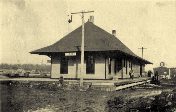 THE OLD DEPOT IN THORPE, CLARK CO., WI (notice the spelling of Thorpe).