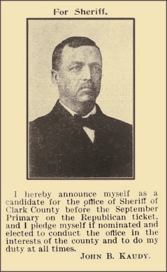 The newspaper clipping below appeared in local papers and is an announcement of John Botey Kaudy's candidacy for Sheriff of Clark County, Wisconsin.