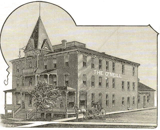 The O'Neill House is owned and run by John Paulus. It is the largest and best appointed hotel in the city, and enjoys the cream of the traveling trade. It is located in the center of the city, three blocks from the railroad depot, two blocks from the post office and one block from the court house. It has electric lights and all modern improvements. Mr. Paulus, a few years ago, was a prominent logger on Black River, but left the business and settled down to hotel management. He is president of the Neillsville Electric and Water Supply Company, and withal a substantial citizen. The O'Neill House is a worthy remembrance by anyone visiting Neillsville.