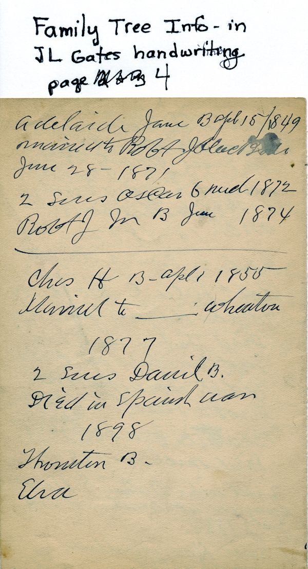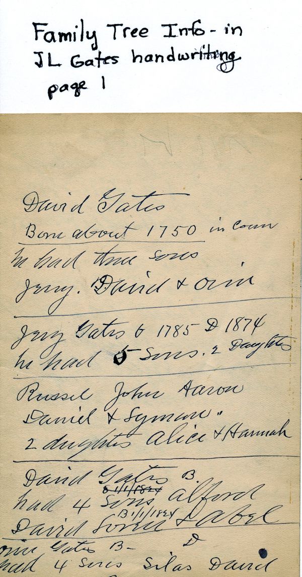 Gates Family Tree in the handwriting of James L. Gates; [Page 1] [Page 2-3] [Page 4]