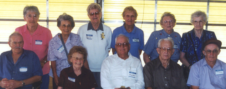 Back Row--Margaret (Urbanz) Plautz; Alice (Ule) Braun; Rose (Plautz) Pakiz; Mary (Snedic) Dujenski; Vicki (Buckovic) Krultz; Ann (Kokaly) Boh. Front Row--Emil Plautz; Olga (Ule) Hriber, George Plautz, Rudy Kokaly; Darwin Kokaly.