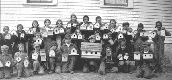 Above is one of the early Braun Settlement 4-H Clubs displaying their "Bird House Project". This photo was taken at the side of the Braun Settlement School House in the mid 1920's and belonged to Clayton Braun.
