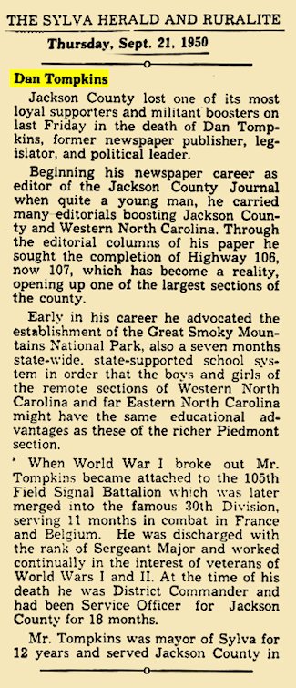 Obit: Tompkins, Daniel Dean (15 Augl 1890 - 15 Sep 1950)