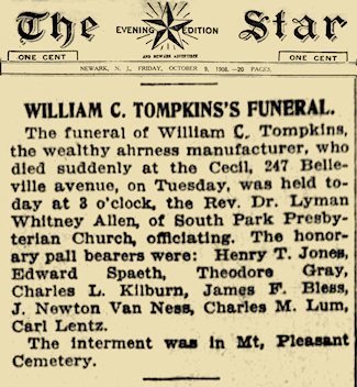 WILLIAM C. TOMPKINS' FUNERAL.