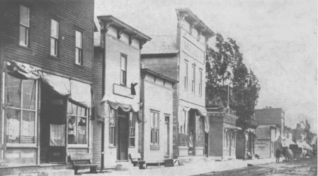 The photo above was taken about 1912, shortly after the first concrete sidewalks were laid. Fire has resulted in many changes, having destroyed the first three of the building shown here and the entire block to the south not shown here. Dorchester has replaced the losses with modern buildings, Photo from Alta's Studio by courtesy of W. P. Lehnertz of Dorchester.