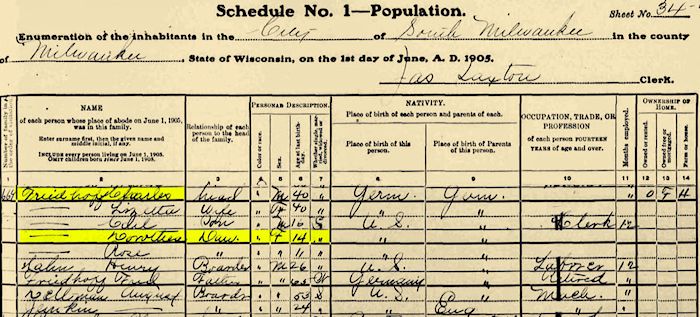 1910 Federal Census, South Milwaukee, Wis.