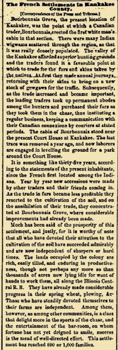 Press and Tribune, Chicago, IL (19 Apr 1859)--History of Bourbonnais, IL