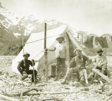 While gold was being found in Nome and other parts of Alaska, almost none was in the Copper Valley. Many miners abandoned the provisions they had worked so hard to bring into the Copper Valley, and raced back over the Valdez Glacier to the coast, empty handed, Photos by N. Benedict, Alaska State Library, PCA 201-132 & PCA 210-30 |
