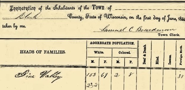 Abel Turner 1855 Pine Valley, Clark, Wis. Pine Valley, Clark, Wis. |
