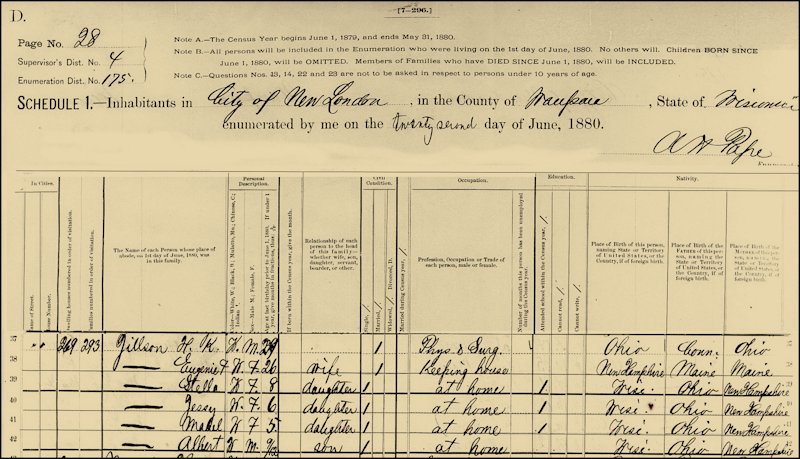 1880 Federal Census, New London, Waupaca Co., Wisconsin, Sheet Letter D, Sheet Number 161,Volume 1