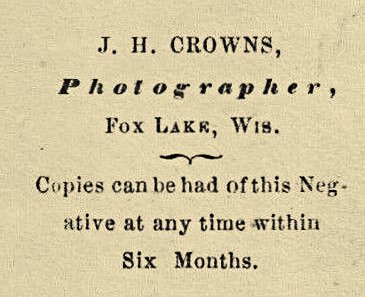 CROWNS, John H. Fox Lake, Dodge County 1860-1878 with branch studio in